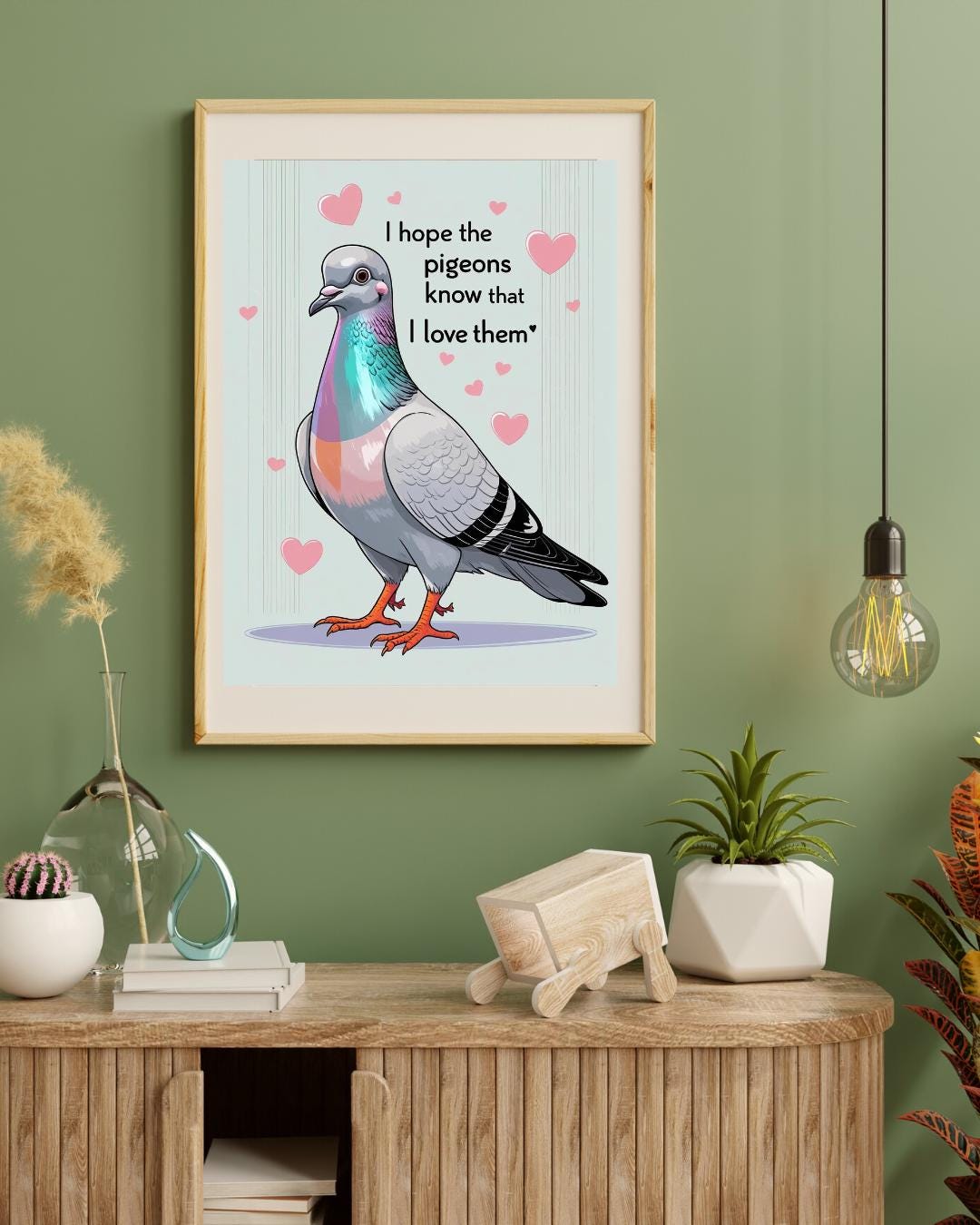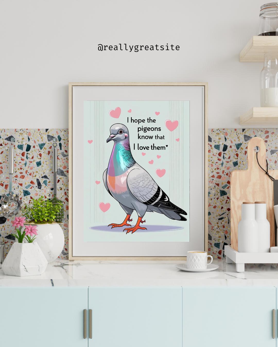 Funny Pigeon Print: Retro Indie Bird Poster (Digital Download)