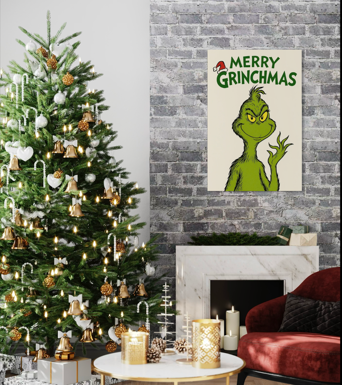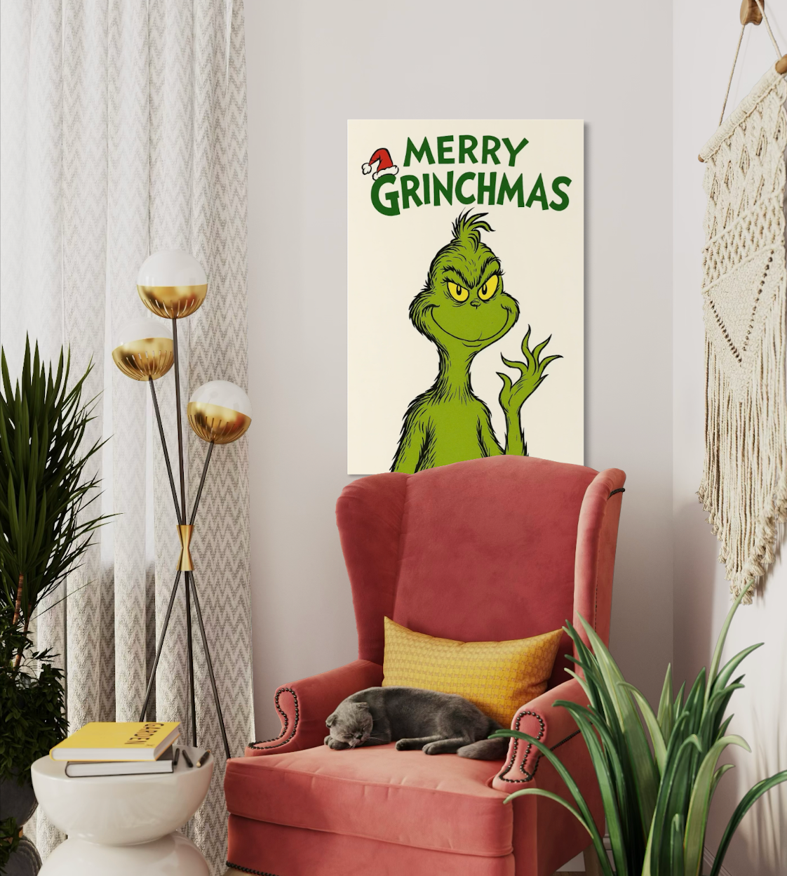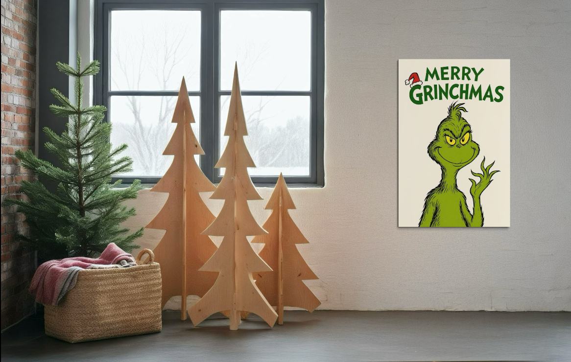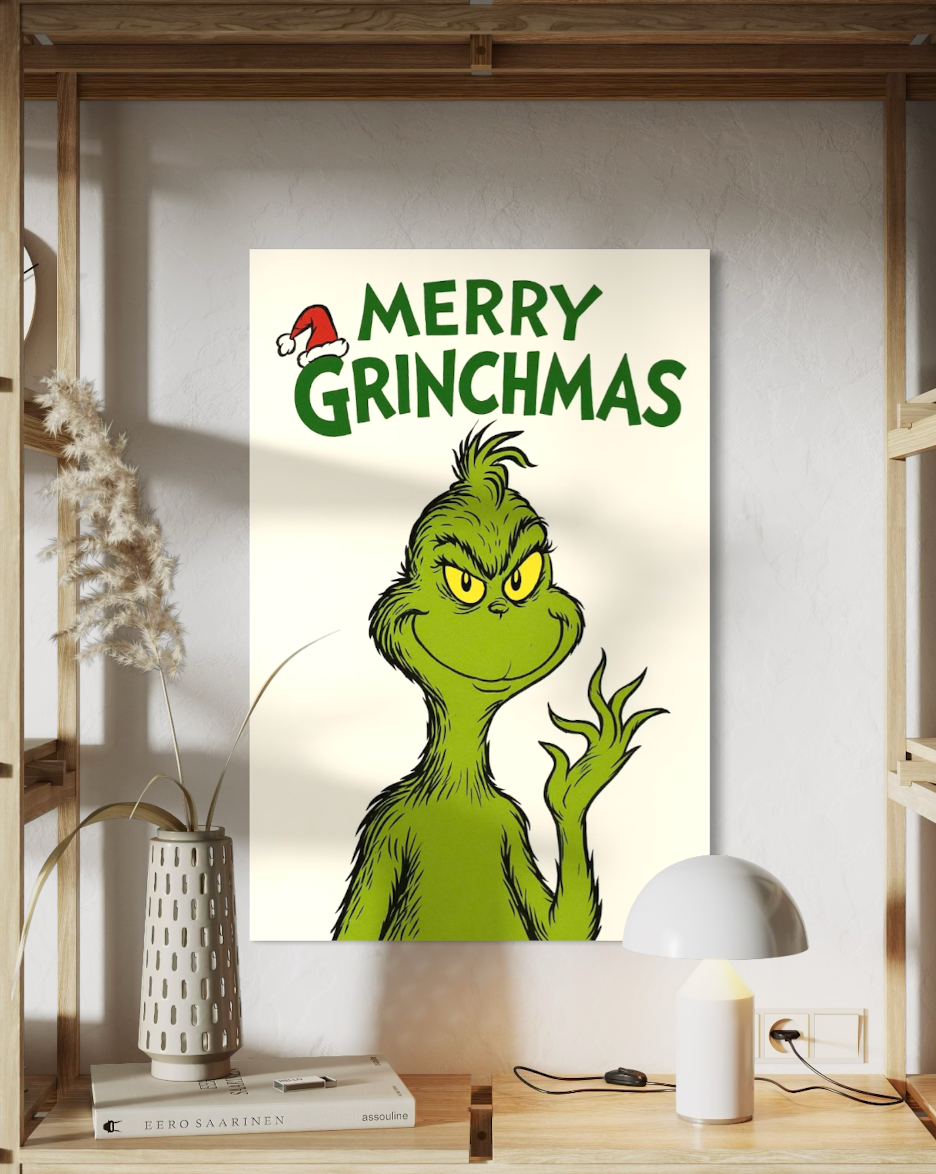 ā Grinch-inspired Christmas wall prints that add humor and charm