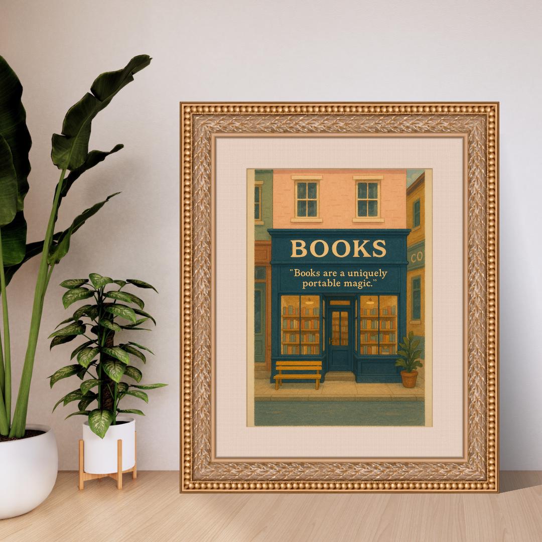 Cozy Bookstore Art Print: Whimsical NYC Illustration (Digital Download)