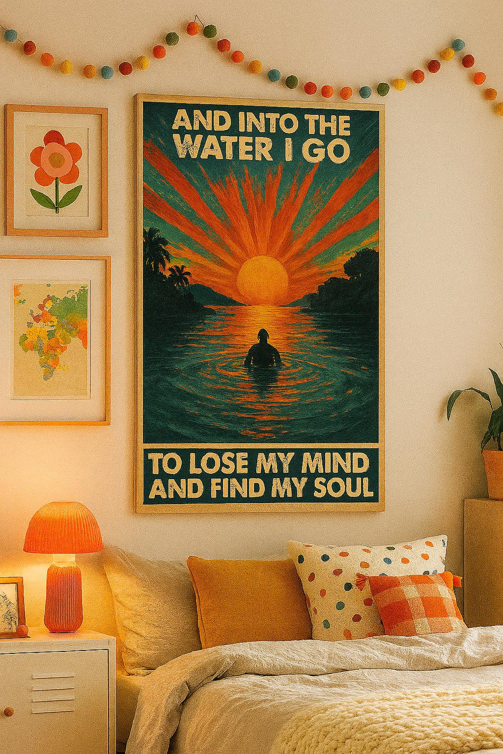 Ocean Sunset Swimming Art Print: Inspirational Soul Quote (Digital Download)