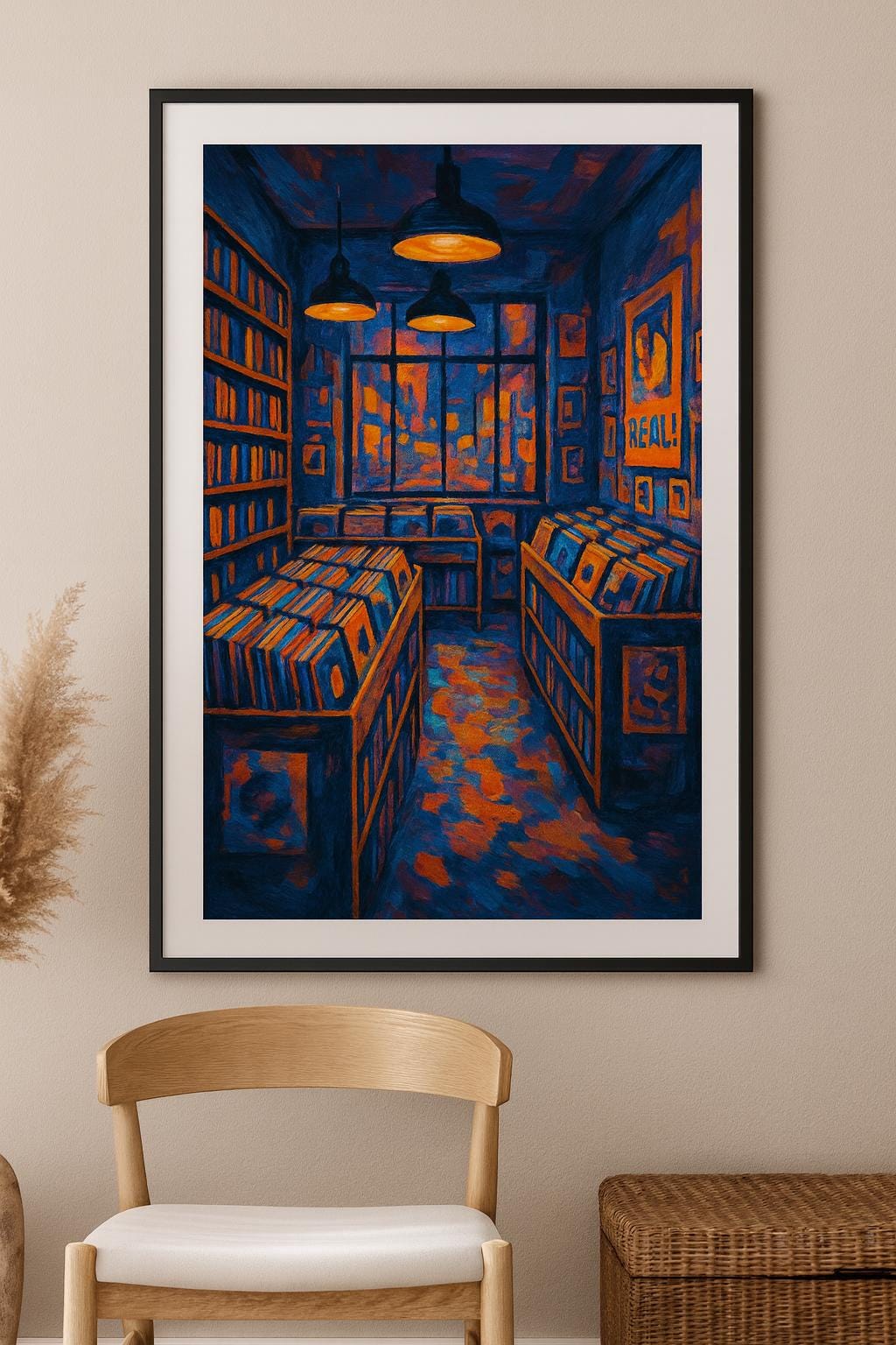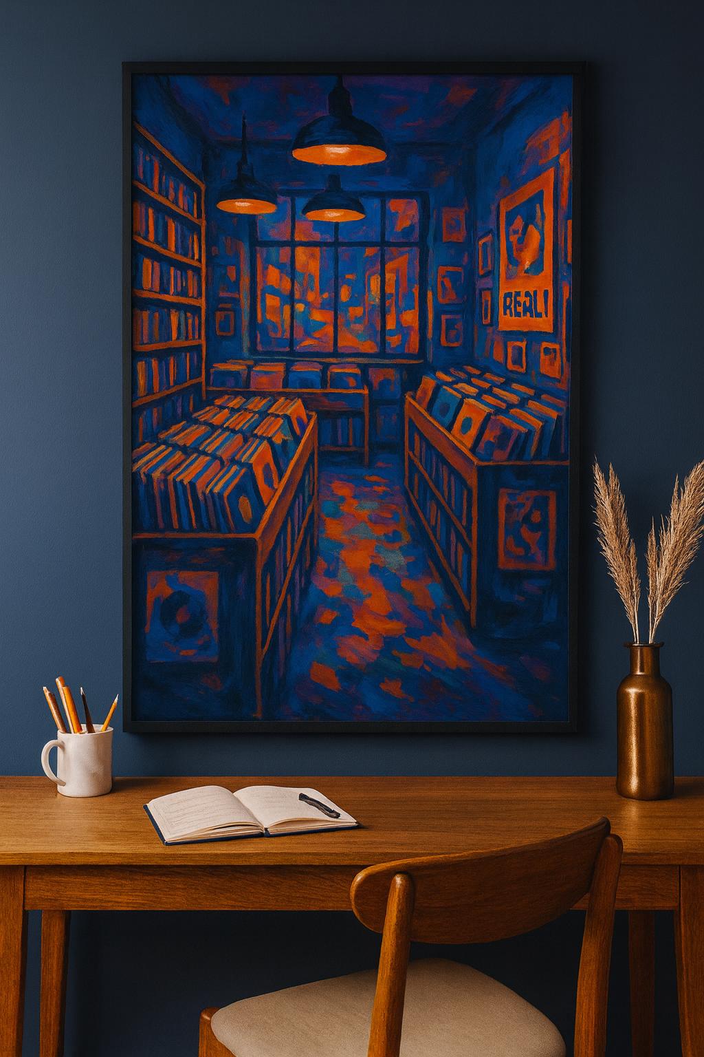 Retro Record Store Art Print: Modern Expressionist Music Poster (Digital Download