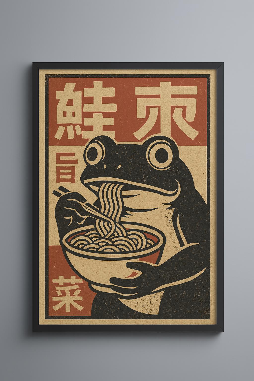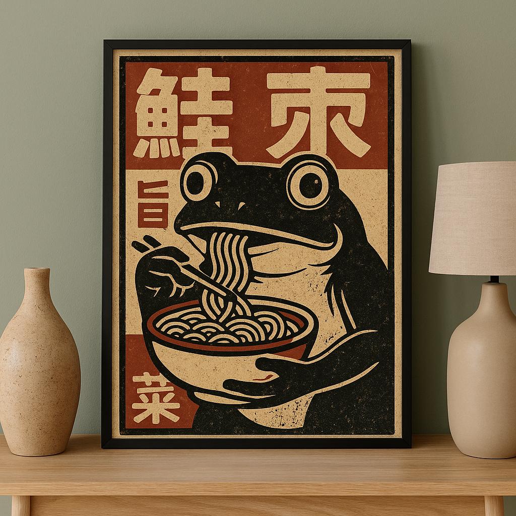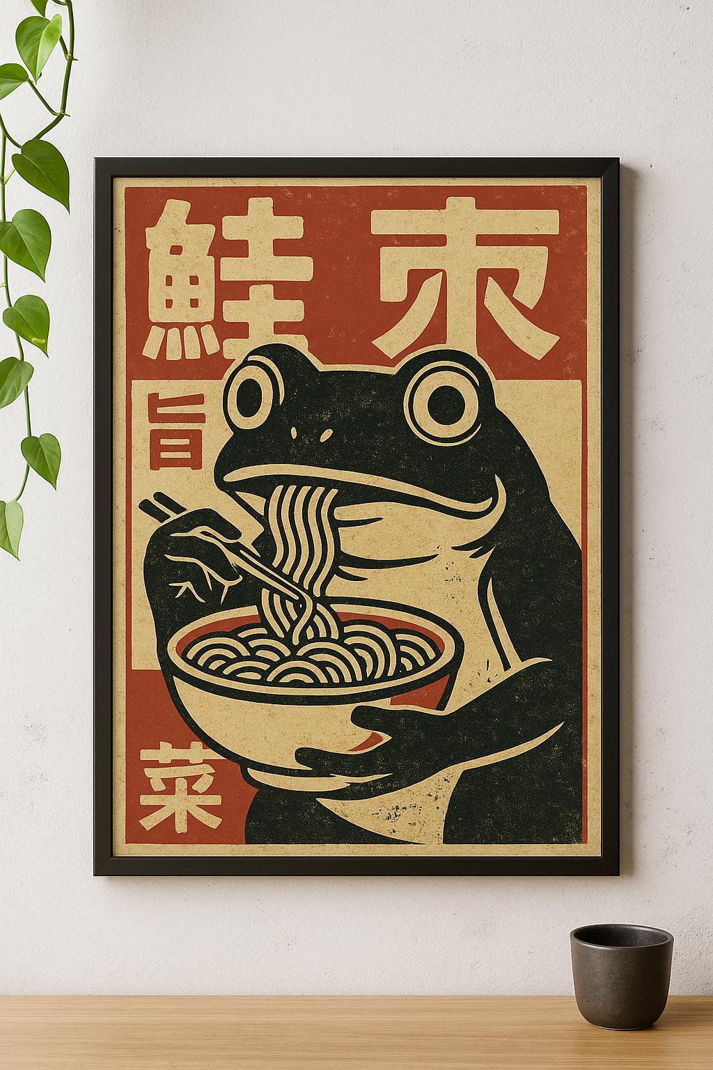 Vintage Frog Ramen Print: Surreal Asian Kitchen Art