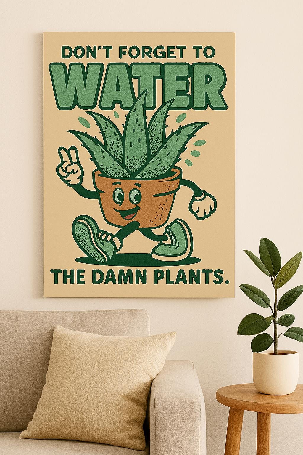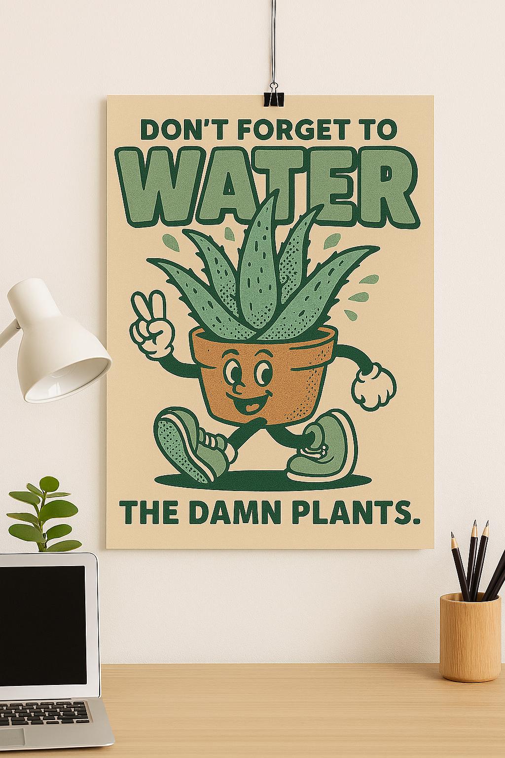 Funny Plant Print: Retro Comic Aloe Vera - "Water the Damn Plants" (Digital Download