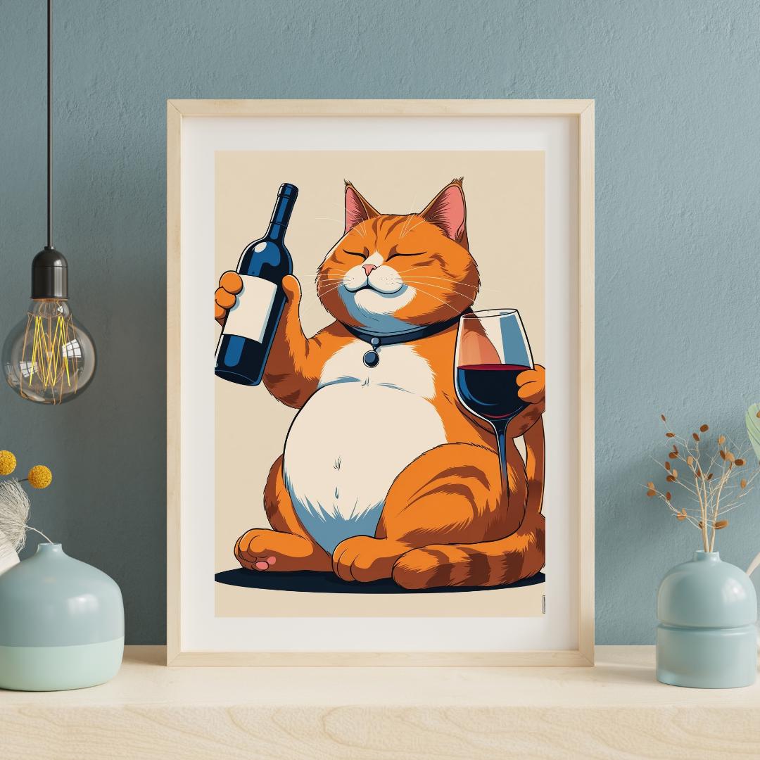 Smug Cat Wine Poster: Funny Retro Kitchen Art (Digital Download
