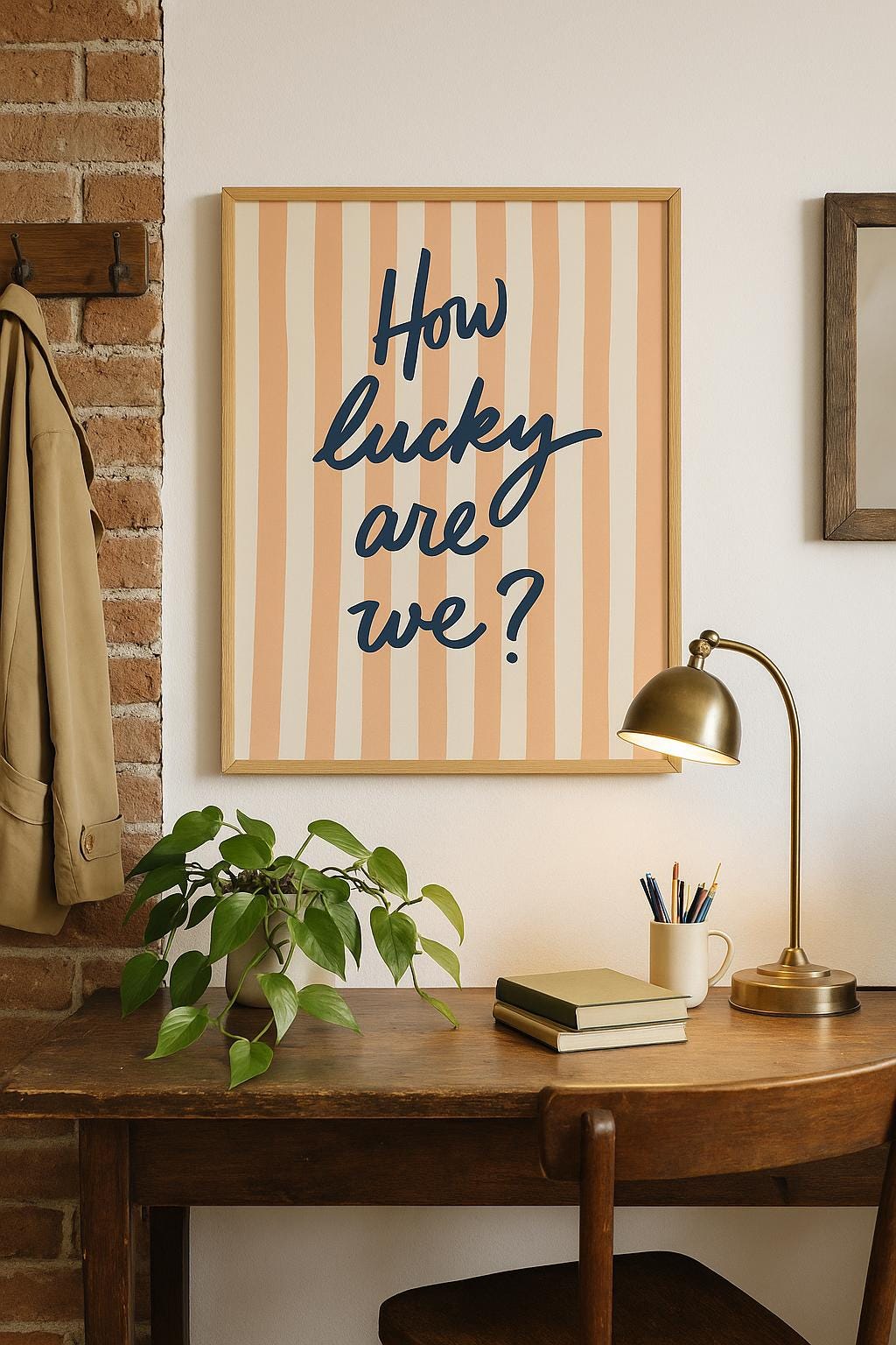 Dopamine Decor Print: Navy Script, Peach Stripes (Digital Download)