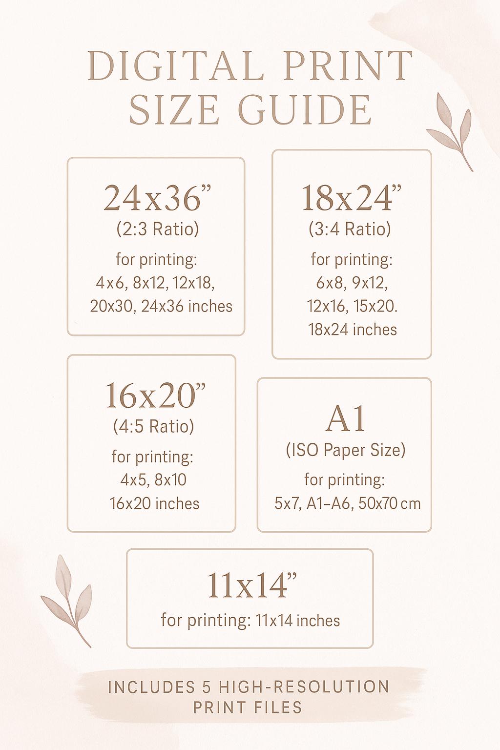 ✔ 2:3 Ratio (e.g., 20x30", 16x24", 12x18", 10x15", 8x12", 4x6")