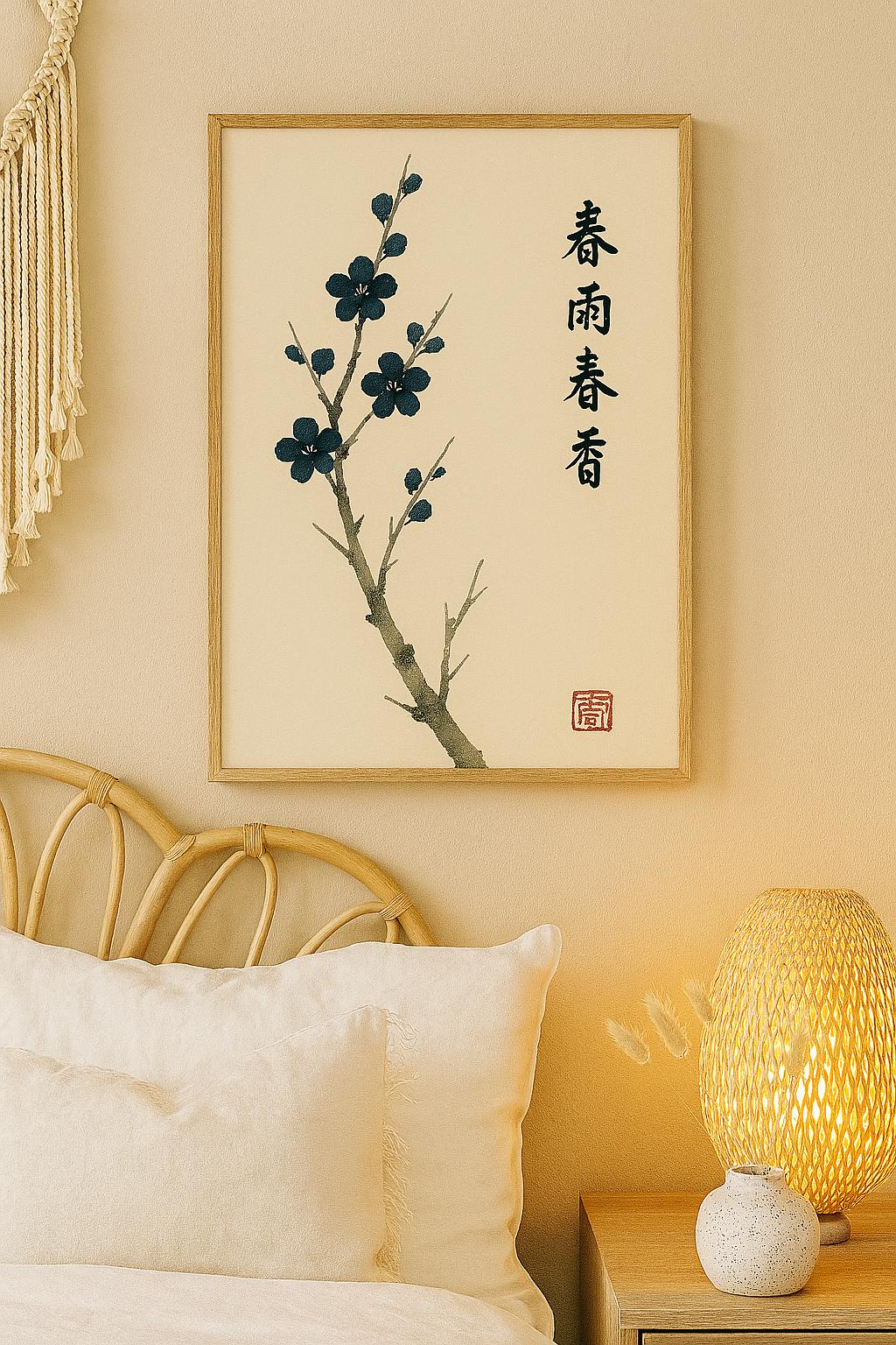 Japanese Cherry Blossom Art Print: Sumi-e Ink Painting (Digital Download
